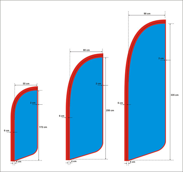 Durch ihre charakteristische Form der Beachflag ist Ihr Werbeaufdruck auch bei Windstille gut sichtbar.