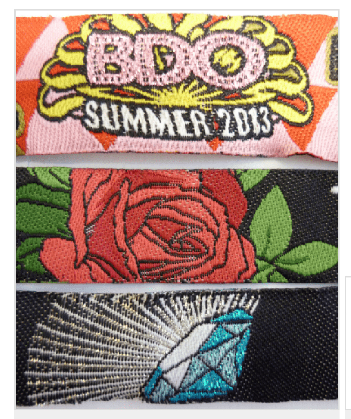 Der Vorteil des Webens gegenüber dem bislang praktiziertem Bedrucken besteht darin, dass die Kontrollarmbänder oder VIP-Armbänder nicht unbefugt reproduziert werden können. Auf Stoff drucken können ja viele, aber den Stoff selbst zu weben bleibt nur wenigen Spezialisten vorbehalten da das gewebte Kontrollarmband erst mit Ihrem individuellen Motiv gewebt bzw. aufwendig produziert wird, es wird kein Trägermaterial bedruckt.