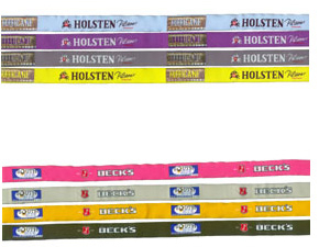 Die hohe Qualität und Detailauflösung unserer Stoffeintrittsbänder ermöglicht neben der perfekten Umsetzung Ihres Logos überdies zusätzliche Werbemöglichkeiten für Ihre Sponsoren. Bei einem Format von 15 x 350 mm bieten unsere Kontrollarmbänder jede Menge Platz für farbige Blickfänge und Informationen.